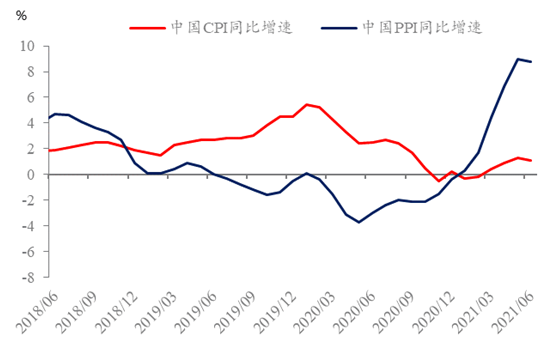 6月PPI指數(shù)回落幅度較小的主要原因在于國際原油價格以及動力煤價格的快速上漲,據(jù)統(tǒng)計,6月布倫特原油均價上漲6.18%,秦皇島Q5500動力煤均價上漲5.41%,原油以及動力煤價格的上漲影響了6月PPI指數(shù)的回落幅度。
